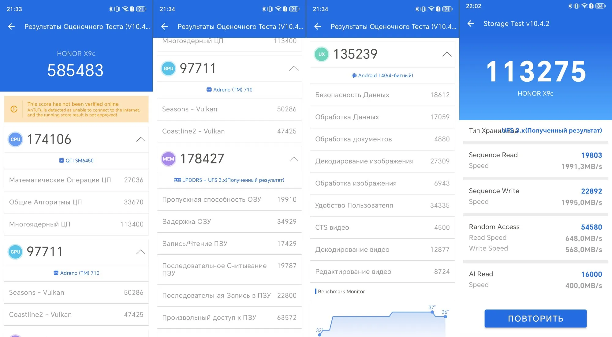 Конечно, ожидать от “середнечка” какой-либо баснословной производительности не стоит априори, ведь на то он и доступный смартфон. Однако даже тут HONOR X9c показывает отличный результат, гарантируя пользователю оптимальный запас мощности, которого хватит и на игры и на плавный интернет-серфинг, и на безукоризненную работу камеры. Аппаратная платформа, лежащая в основе смартфона не нова и многие даже скажу, что она морально устарела, ведь чипсет Qualcomm Snapdragon 6 Gen 1 вышел на рынок еще в 2022 году. Однако до сих пор он достаточно хорошо показывает себя в гаджетах среднего класса. Да это не самый быстрый процессор, но если подходить к производительности без фанатизма, то мощности его хватит на все повседневные сценарии использования и “тормозов” вы просто не заметите.